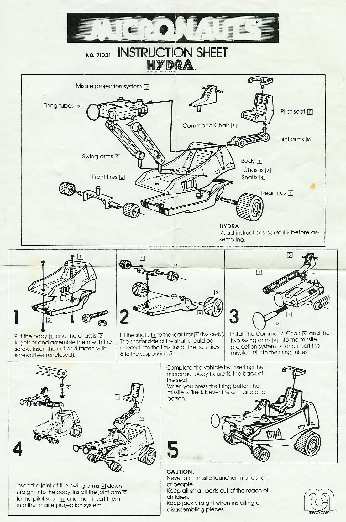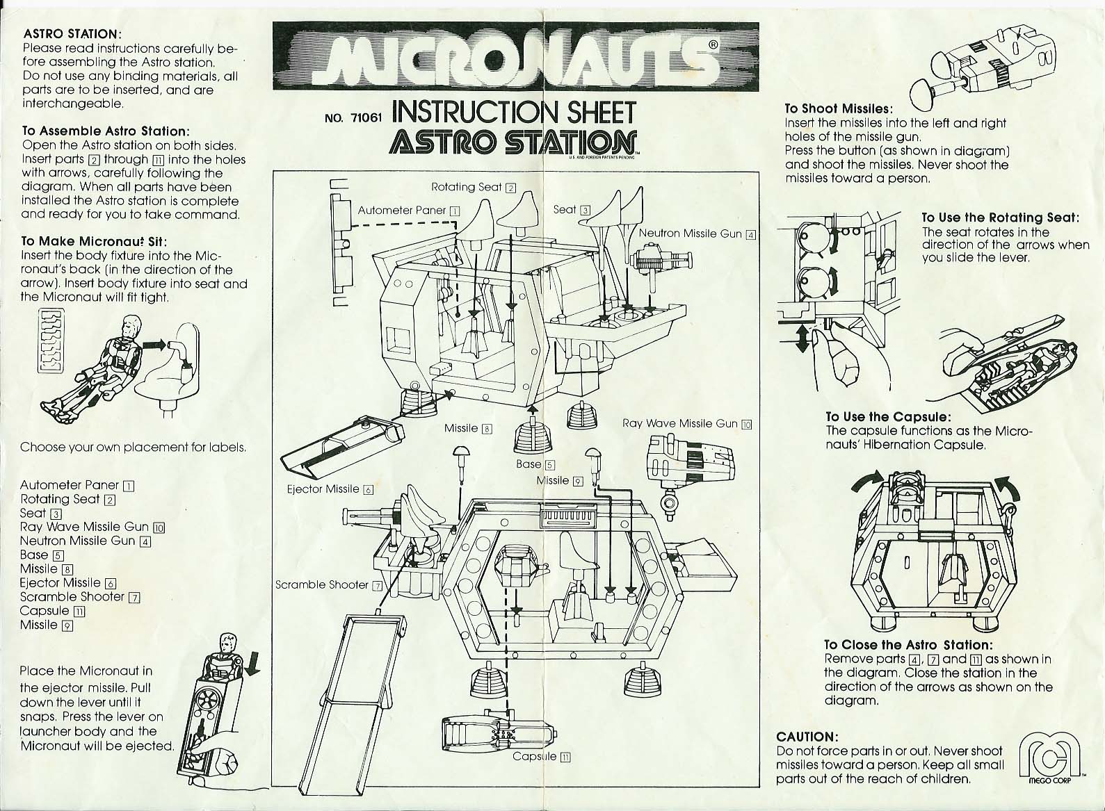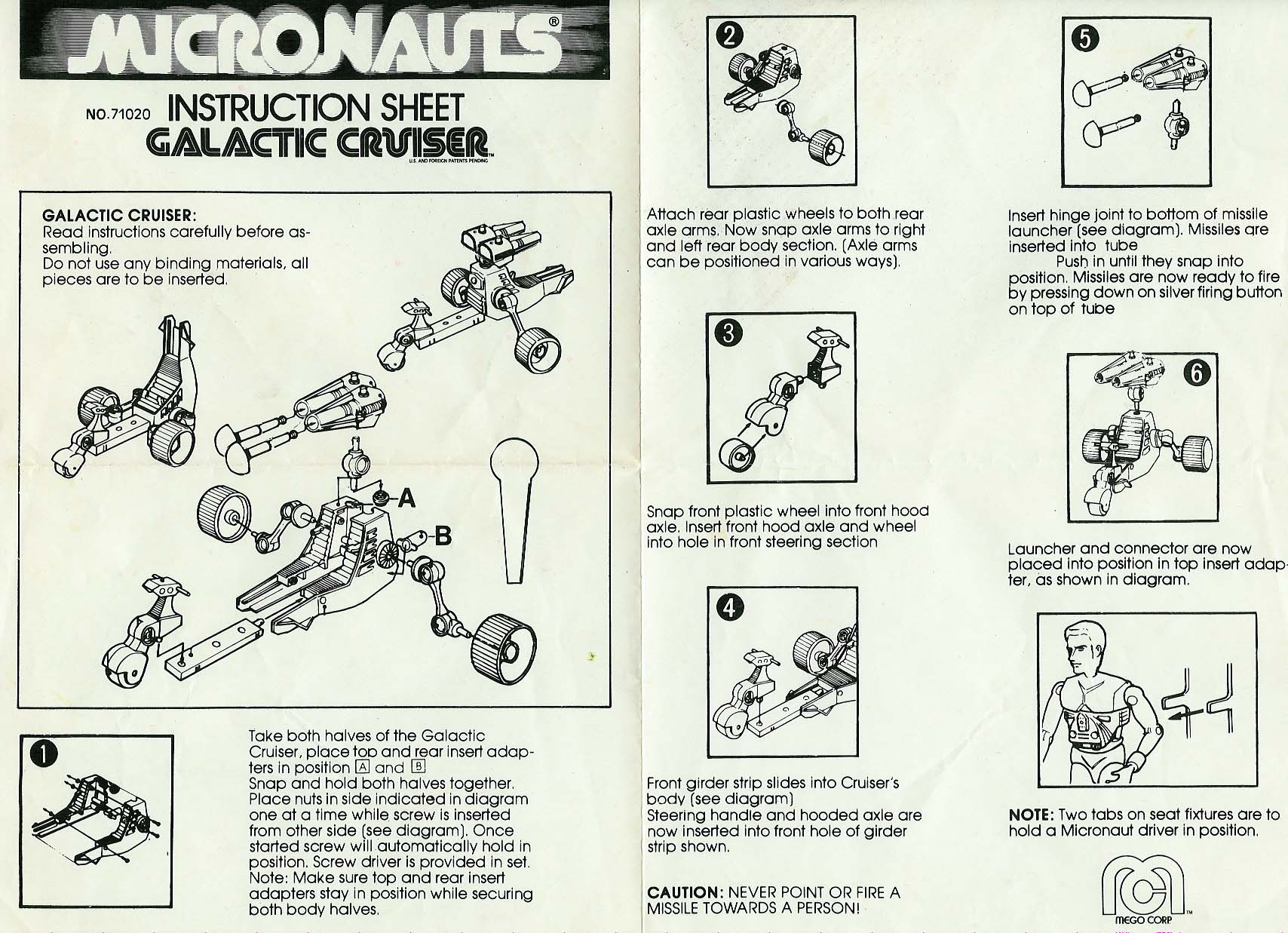 The Micronauts instruction sheets served a dual purpose for kids back then. Not only were they a helpful guide in the construction of said play set, vehicle, etc...they were also just cool to look at. The instruction sheets were included with all boxed items, and were basically copied straight from their Microman counterparts. Obviously, the text was changed to English, and all Japanese names were changed to the new Mego ones, but sometimes they would leave in the then never released Microman figure illustration (which also sometimes ended up in the packaging photos!), which made many a 10 year old kid wonder, "who is this guy?" This didn't happen in many cases, but it did once and a while...which 20 years later makes them even cooler. Here you will find a database of the Micronauts instruction sheets, and they can serve a dual purpose for you too: you can just look and enjoy, use as a complete parts referencing guide...or just print yourself out a copy if your Micronauts toy just isn't a complete one without it! |