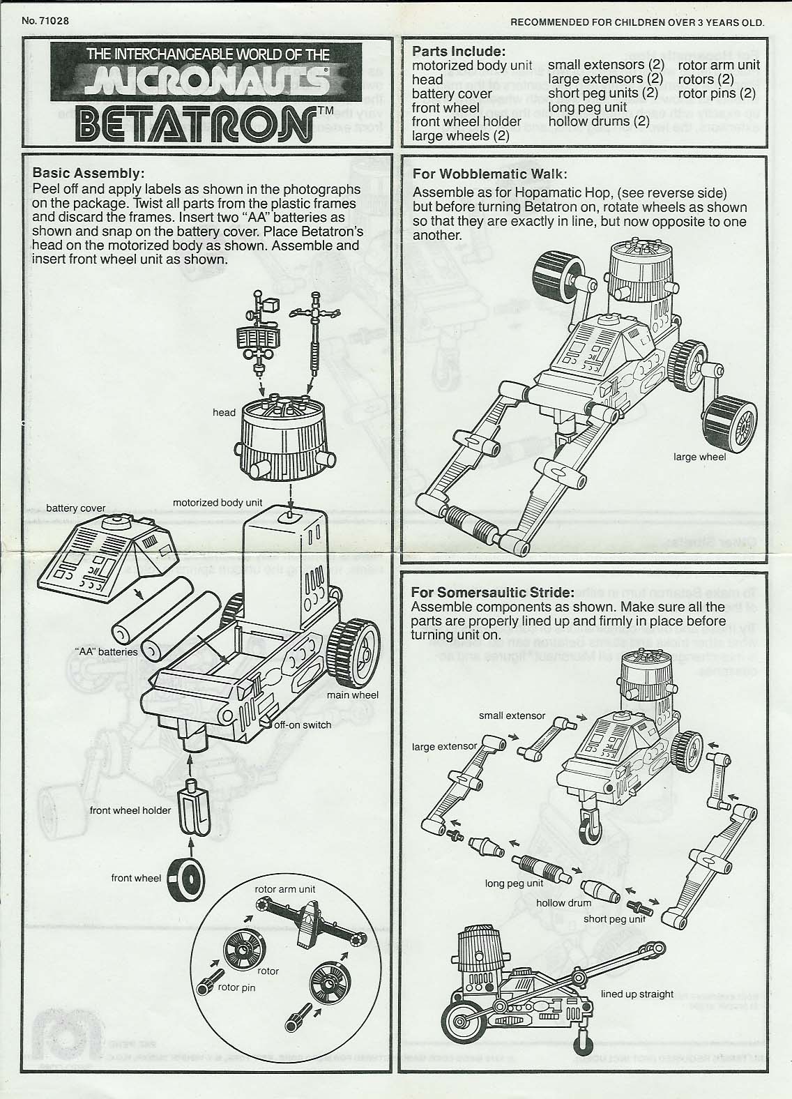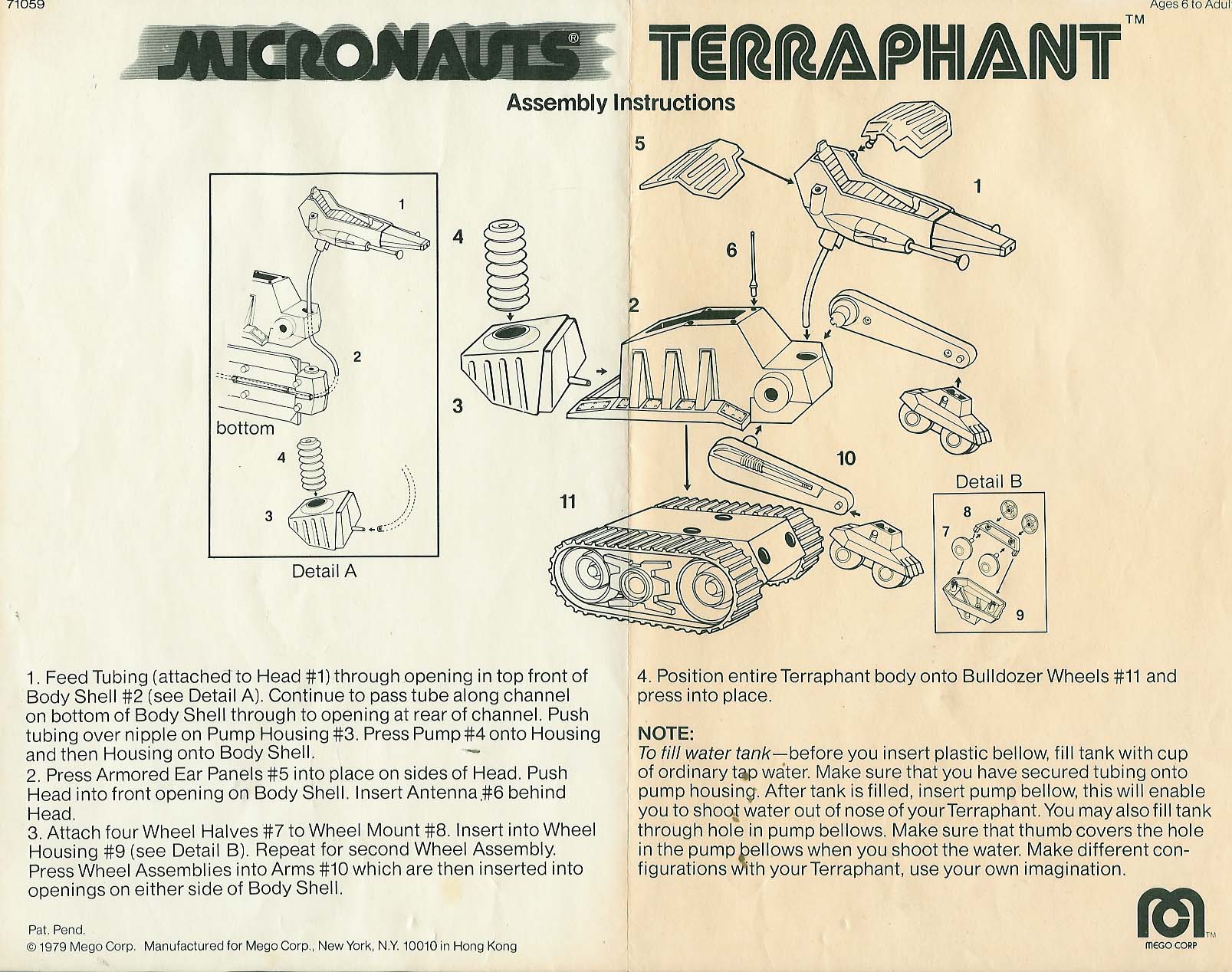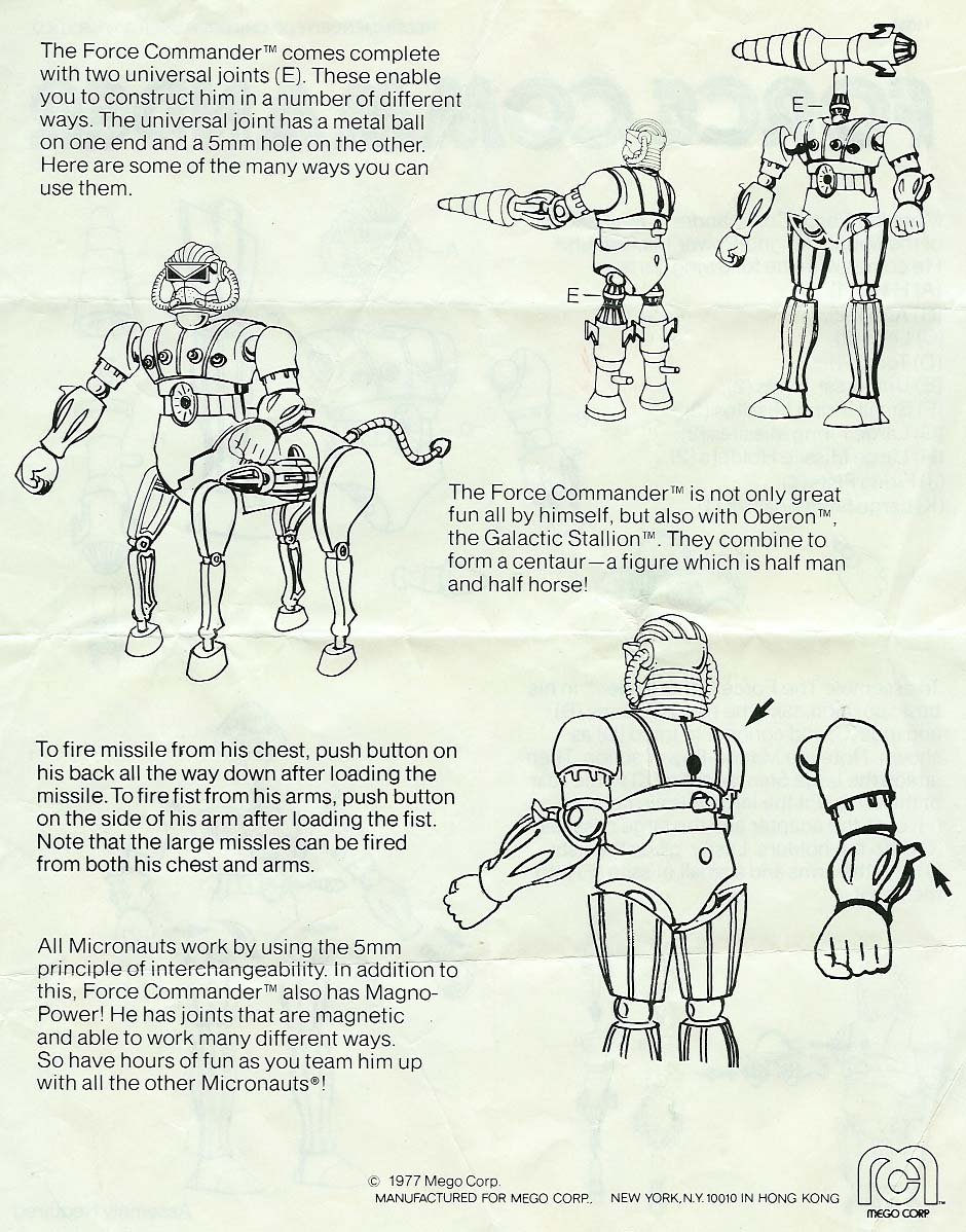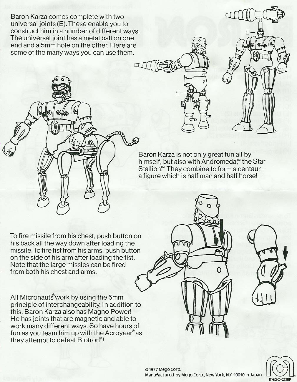 The Micronauts instruction sheets served a dual purpose for kids back then. Not only were they a helpful guide in the construction of said play set, vehicle, etc...they were also just cool to look at. The instruction sheets were included with all boxed items, and were basically copied straight from their Microman counterparts. Obviously, the text was changed to English, and all Japanese names were changed to the new Mego ones, but sometimes they would leave in the then never released Microman figure illustration (which also sometimes ended up in the packaging photos!), which made many a 10 year old kid wonder, "who is this guy?" This didn't happen in many cases, but it did once and a while...which 20 years later makes them even cooler. Here you will find a database of the Micronauts instruction sheets, and they can serve a dual purpose for you too: you can just look and enjoy, use as a complete parts referencing guide...or just print yourself out a copy if your Micronauts toy just isn't a complete one without it! |