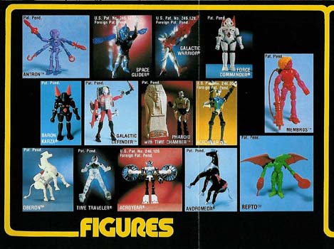 Much like the previous series, this section entitled "Series 3-1978" actually came out about 1979, but the toys bear a 1978 copyright. Not too many new toys released this year, but a few additions to help move the line along. The catalog pictured here would be the last one produced to show off any new toys, and would be released with all the latter years boxed items as well. This year also showed off another old Mego marketing trick - add a few new accessories or changes to an exisiting toy, rename it and put it out as something new. Hence the introduction of Phobos (Biotron), Nemesis (Microtron) and the other 3 silly tron toys added to the line up. This catalog also shows pictured prototypes for some future hits for the Micronauts line: the "Aliens". You'll notice that they have the first version released colored brains along with mis matched weapons, as well as a modified Microman Galactic Defender figure. Follow the links to the left to see the different individual toys for the third series, and the links at top to move onto the next years. |
