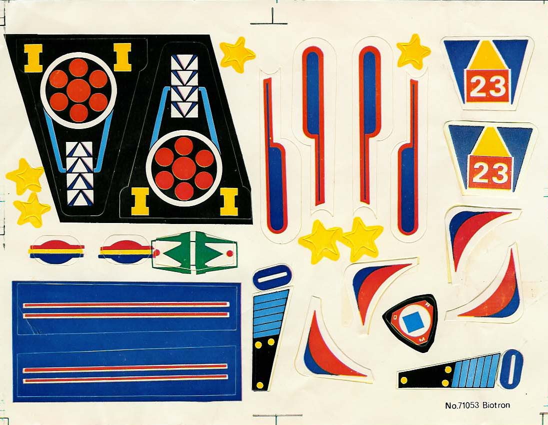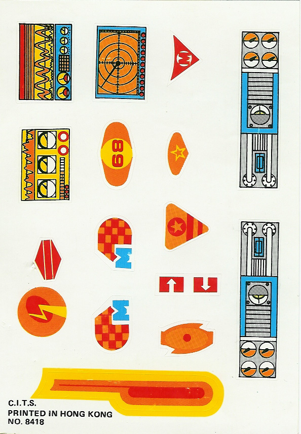 They have since been replaced with painted on details. The painted on details are fine, because long after the stickers have peeled off, the paint will still be there. The Micronauts vehicles, ships and some boxed figures all came with sticker sheets, and was just another important part of playing with the toy; the fact that you could customize the look of the toy yourself by applying the stickers where you wanted. You didn't have to go by what the factory told you...you made the toys look all your own. That's something that painted on details can't replace. Here you will find a database of all those sticker sheets, all printable for your customizing purposes. Most all the Mego sticker sheets were copied from their respective Microman counterparts, with Mego making some usual minor changes (as did the Inter-changeables). They mostly removed any Japanese writing and/or coloring over the Japanese versions toy name. Click on the names below, and you can go look at what that particular toys sticker sheet looked like, or print yourself out a copy. So next time you get that loose Photon Sled missing the decorations it needs, you'll know where to come... |